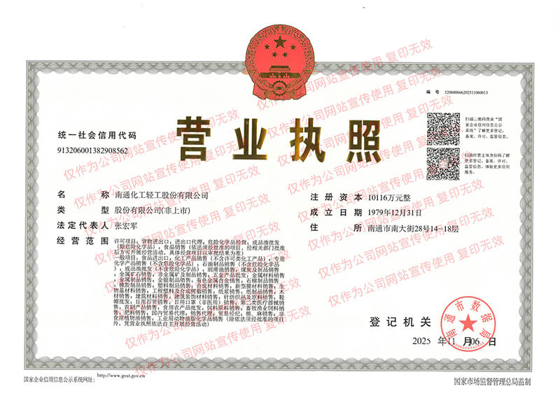 南通化工輕工股份有限公司成立于1963年7月1日, 1997年改制為股份有限公司,注冊(cè)資本10116萬(wàn)元。公司自1963年成立以來(lái),始終堅(jiān)持“誠(chéng)信為本”的商信文化,向海內(nèi)外廣大供應(yīng)商按時(shí)足額履行付款、向廣大客戶(hù)按時(shí)按質(zhì)按量按價(jià)履行供貨、向金融機(jī)構(gòu)按時(shí)足額履行還款等,在商界享有很高聲譽(yù)。